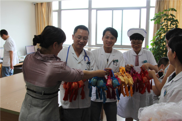 据了解,这次医院工作人员编制1000多个香囊,在端午节送到员工手中,祝福他们过一个吉祥如意的节日!