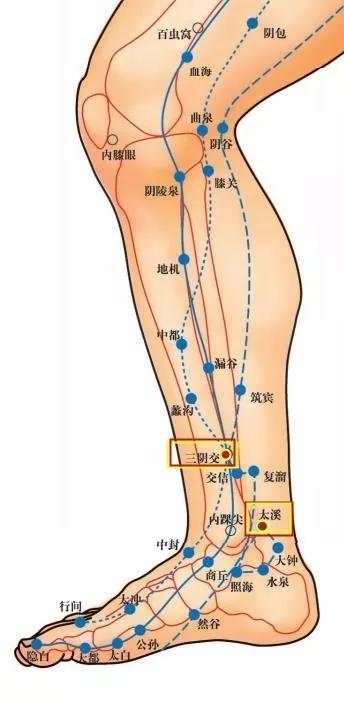命门穴 在脊柱区,第2腰椎棘突下凹陷中,后正中线上。有温补肾阳的作用。 肾俞(双侧) 在腰部,当第2腰椎棘突下,旁开1.5寸。背俞穴穴性偏补,其是补肾的常用穴。 三阴交(双侧) 位于内踝尖直上3寸,胫骨内侧缘后方凹陷处,有温肾健脾、祛湿利水、调经止痛的作用,是妇科疾患的常用穴。 太溪穴(双侧) 位于足内侧,内踝与跟腱之间的凹陷处。《九针十二原》说:“肾也,其原出于太溪穴。”可滋阴益肾,壮阳强腰,同为补肾的常用穴。 操作方法: 选好穴位,点燃艾条,艾条距皮肤5~6厘米,可以根据个人对热度的耐受而自行调节。艾灸15~20分钟,以局部潮红为度。每日1次,连续艾灸10天。可休息2-3天后,开始下一疗程。 *穴位图片来自紫图图书出品《图解黄帝内经》