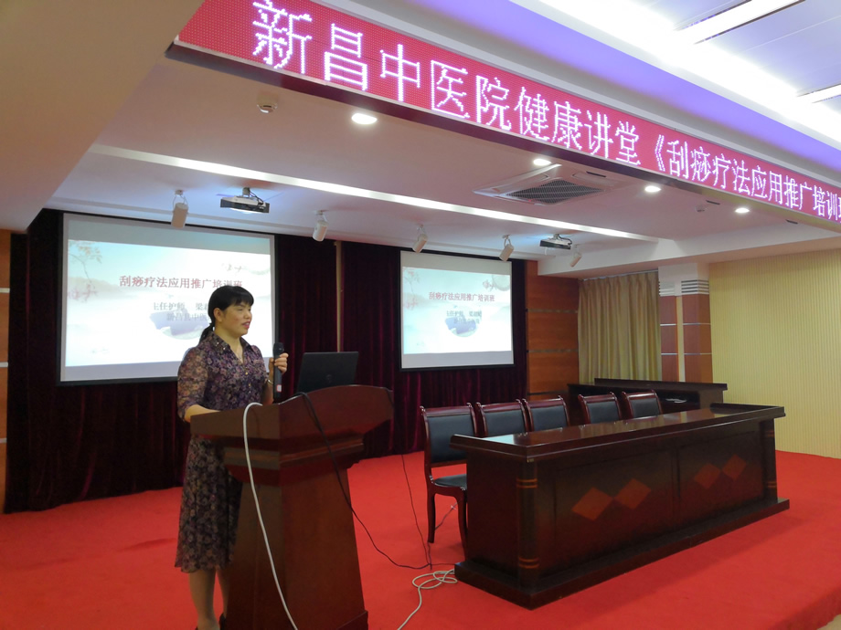 5月24日晚上,县中医院梁君妃主任护师在县中医院学术报告厅给群众及患者作《刮痧疗法应用推广培训班》健康讲座。