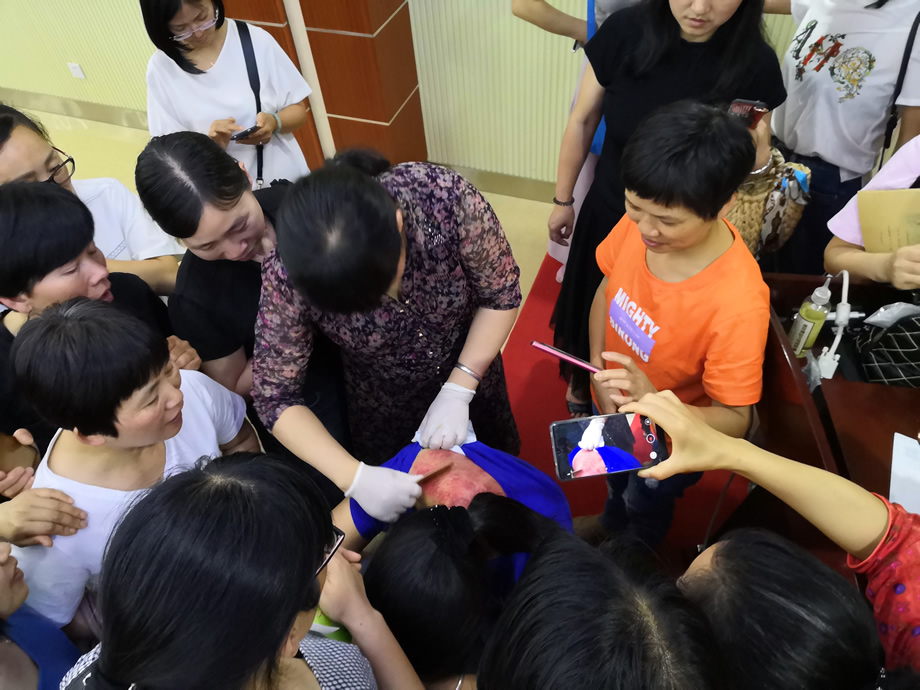 梁护师从健康的理念,刮痧疗法的定义、适应症、禁忌症及常用的一些穴位刮痧保健、常见的疾病刮痧保健等方面展开具体讲解,通过现场示范演示,增加趣味性和实用性,群众们不断地用手机拍照记录要点,伸出手臂与梁护师互动。