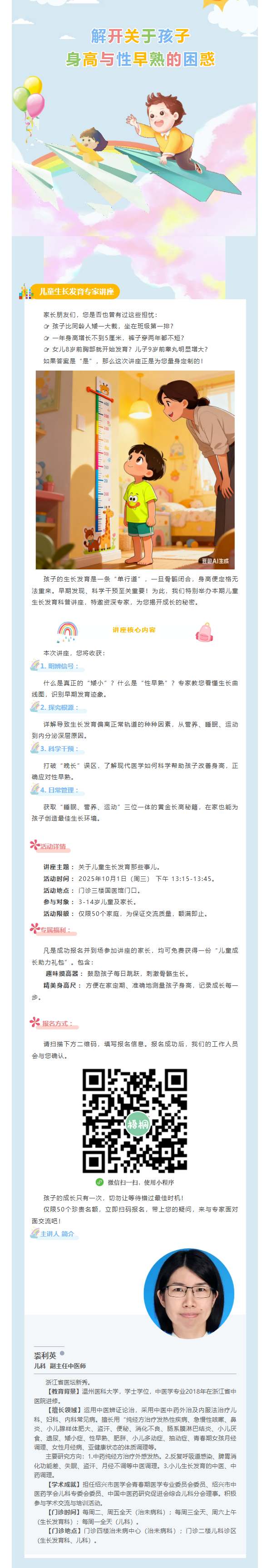 儿童生长发育专家讲座,解开关于身高与性早熟的困惑丨报名即送成长礼包!限50席