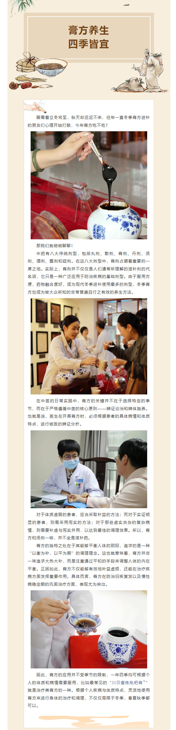 顺四时之变化,调人体之机能,膏方养生,四季皆宜